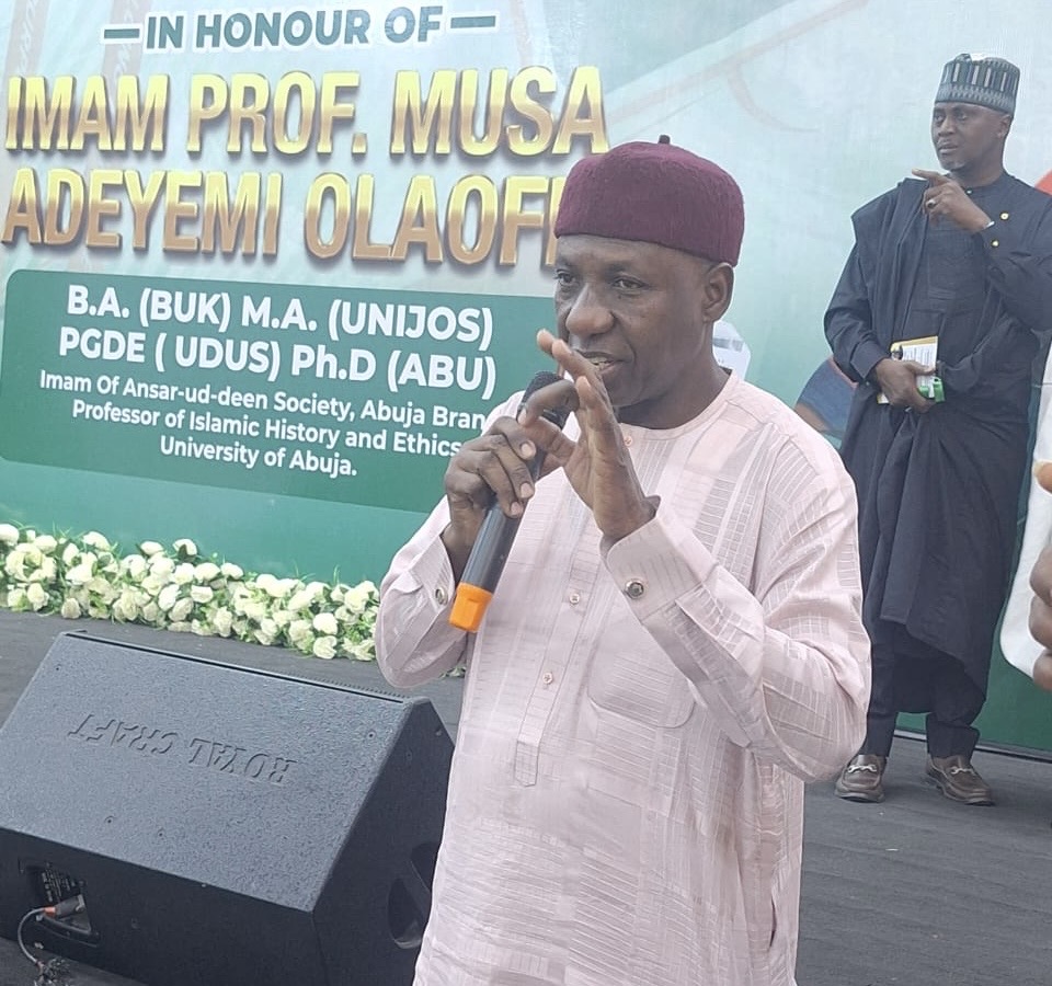 We are proud to have you all here today, to celebrate one of our own, Professor Musa Adeyemi Olaofe, the Imam of our Abuja mosque and a distinguished scholar whose academic prowess has positively shaped national and moral discourse both within and beyond Nigeria.