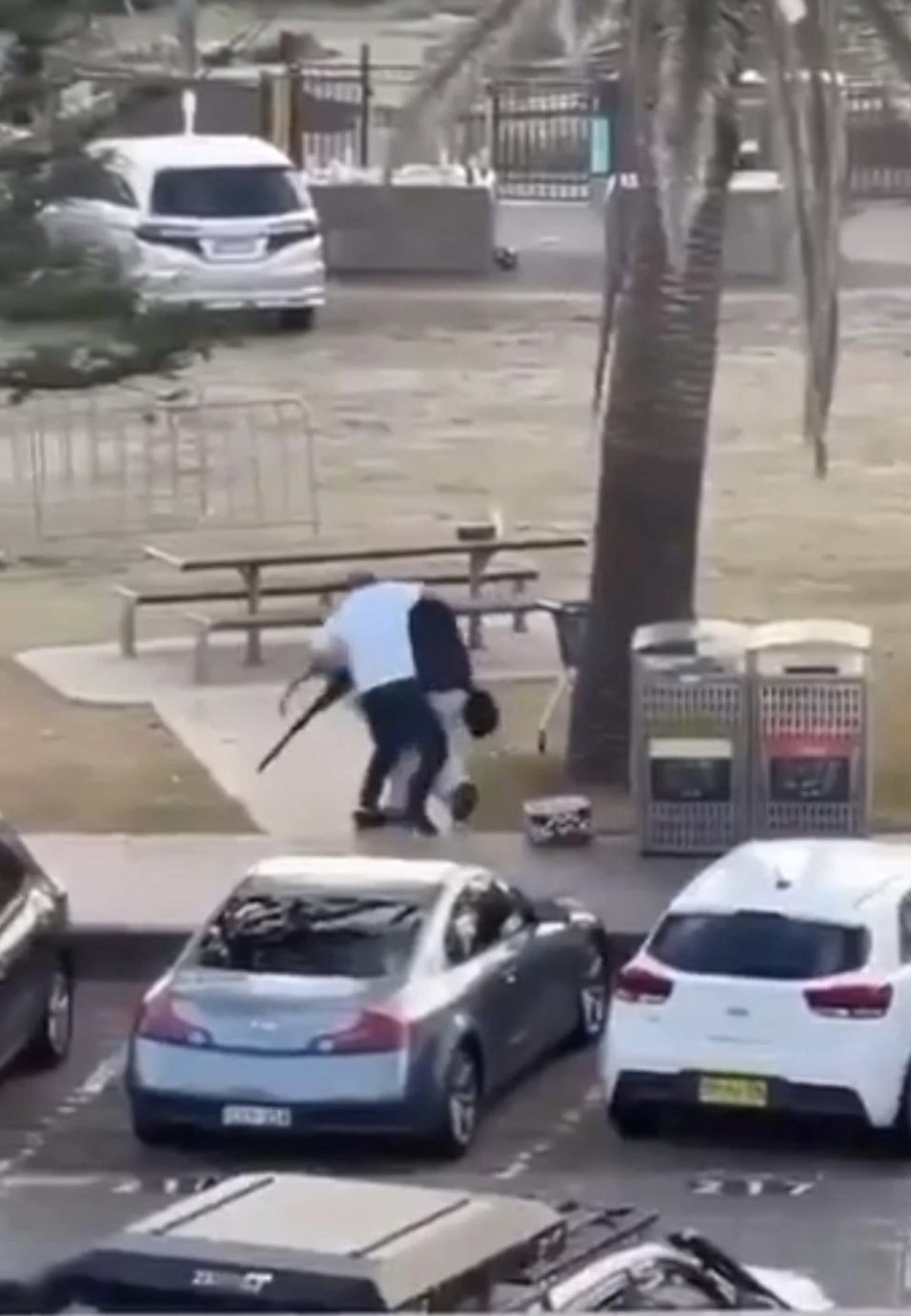 Video footage that has since gone viral, garnering millions of views, shows Ahmed crouching behind parked cars as he approached the gunman, timing his movement between shots. When close enough, he lunged, wrapped his arms around the attacker, and wrestled the weapon away before placing it aside and backing off to avoid further escalation.